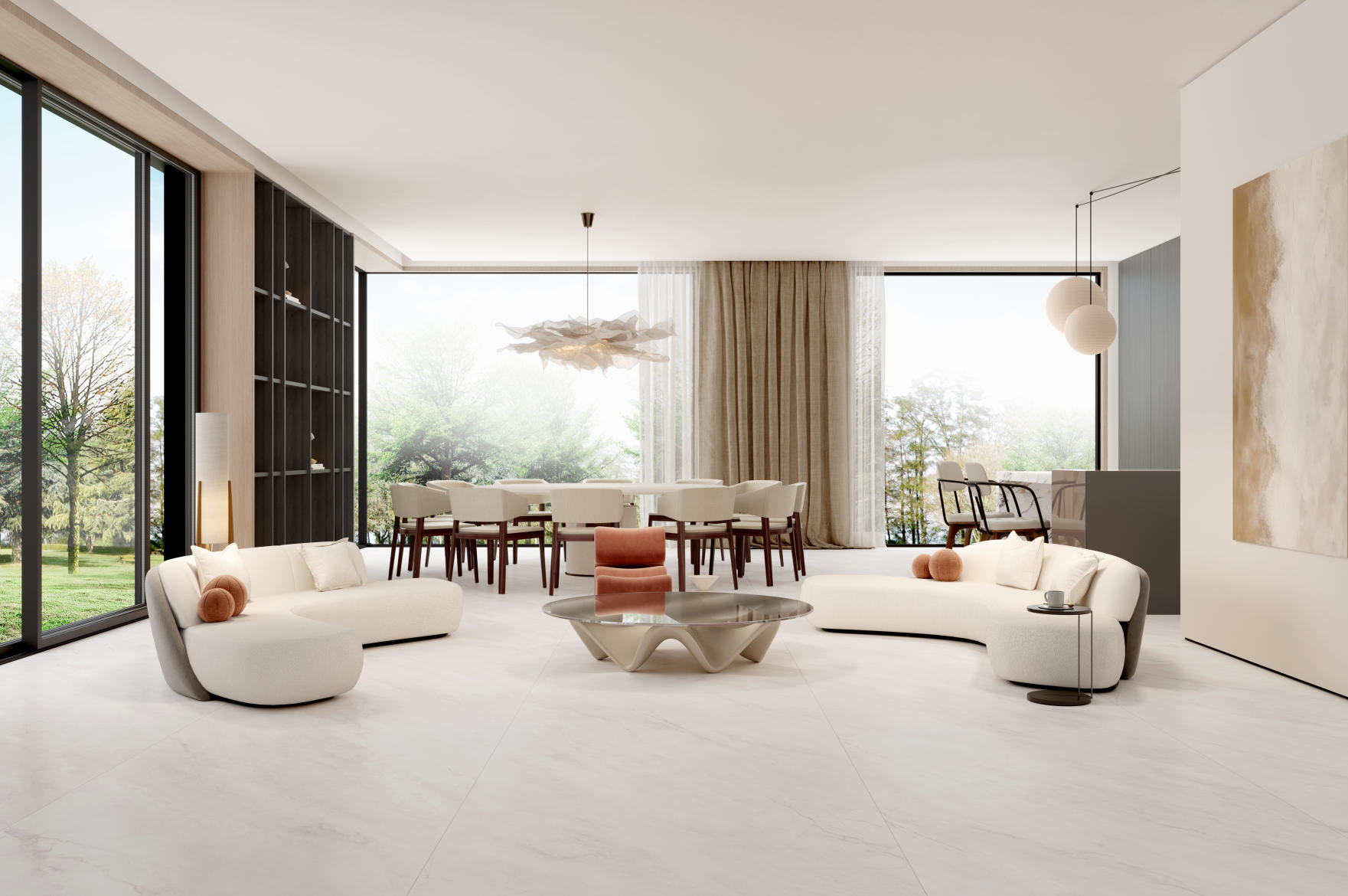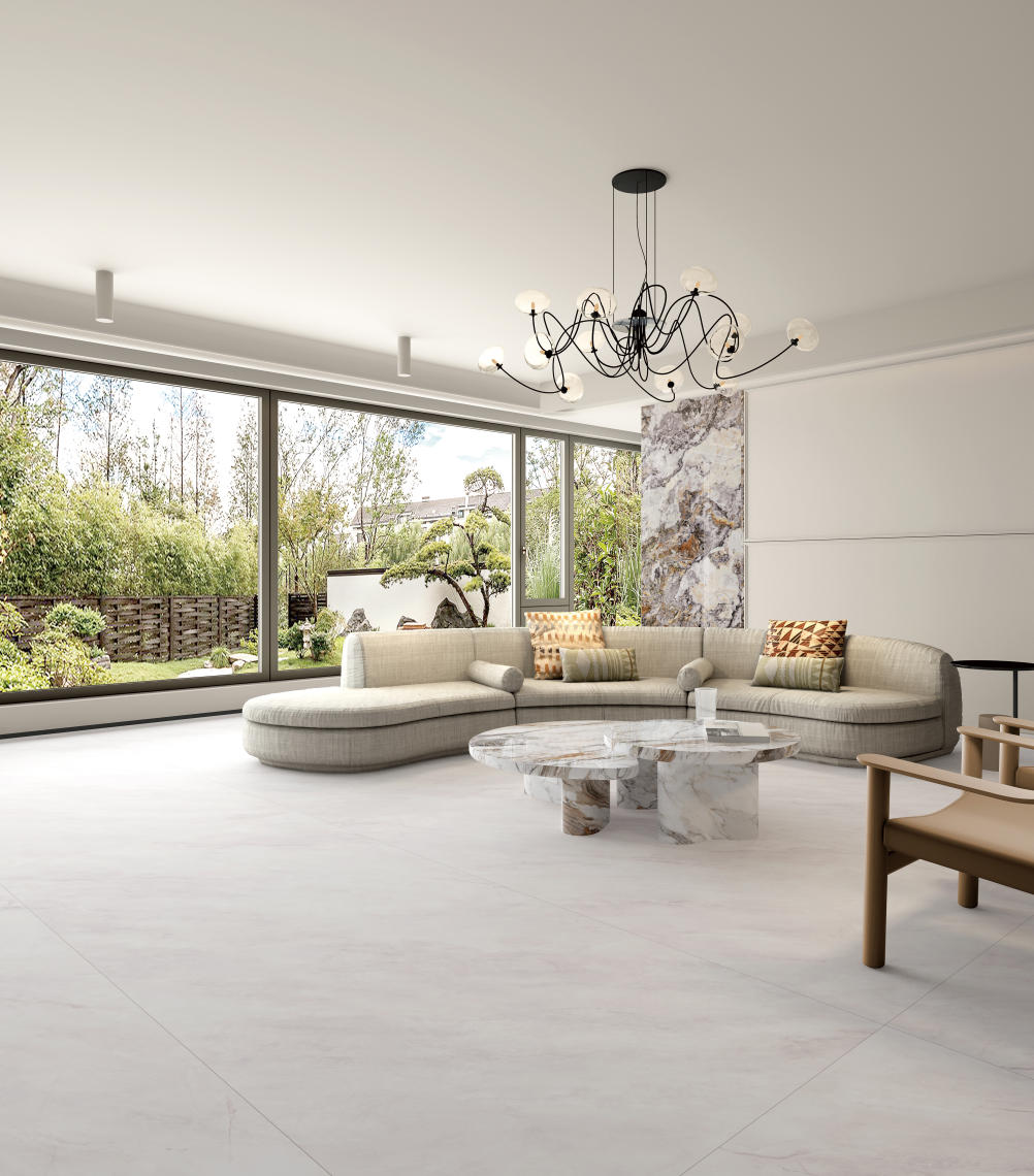 以純凈的白色為底,灰白云狀流紋層層繚繞,自然飄逸的紋理增強(qiáng)視覺延伸感,營造一種寧靜悠遠(yuǎn),超凡脫俗的氛圍。或疏或密的紋路,細(xì)膩婉轉(zhuǎn),沒有對稱的刻意,卻藏著天地造物的和諧。
